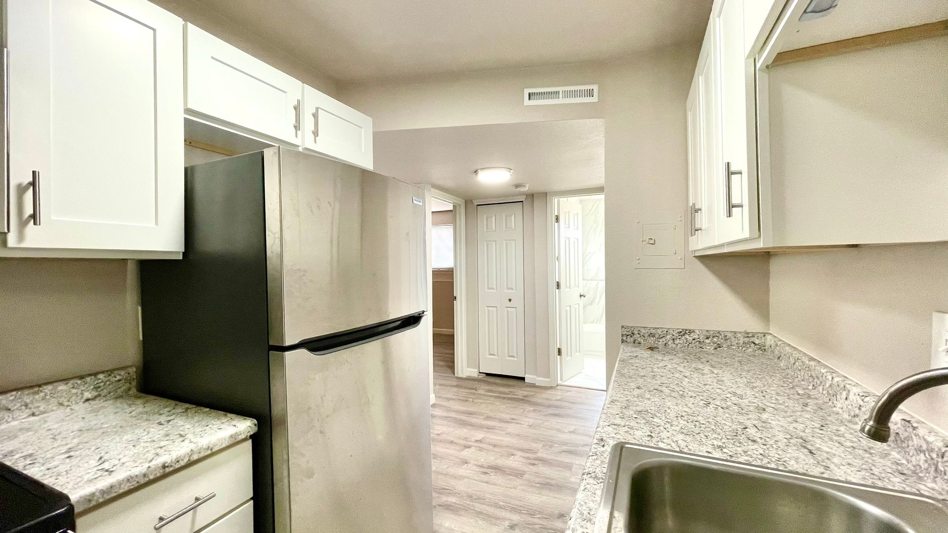 Welcome home to this newly updated one bedroom, 1 bathroom unit! This spacious property has plank flooring and newer paint, ceiling fans, completely updated bathroom and kitchen with stainless steel appliances! Call today to schedule your appointment and discuss security deposit alternative options!